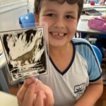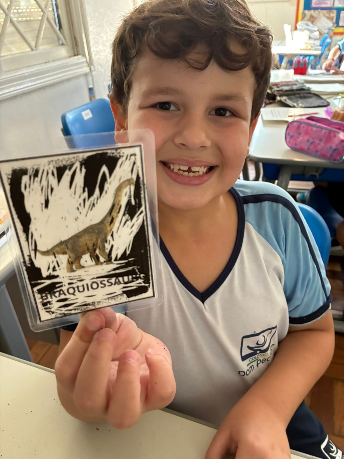 Cada aluno participou de um sorteio especial — uma raspadinha — para descobrir qual dinossauro seria o tema da sua pesquisa.